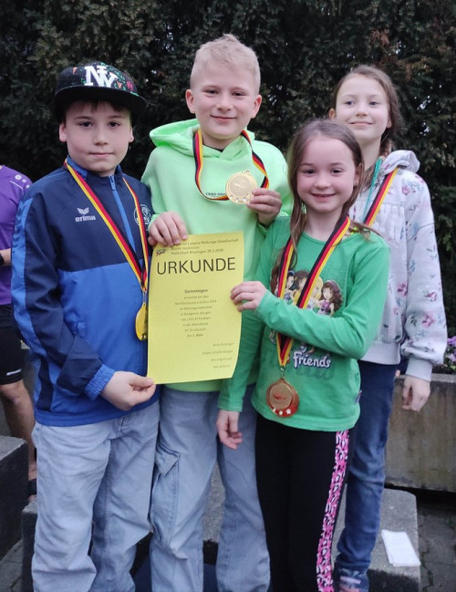 In der Altersklasse AK 10 männlich war mit Anna Rutzinger, Mia Bothner, Ben Engelhardt und Johann Schellenberger eine Mannschaft am Start, die zum ersten Mal an einem Wettkampf teilnahm. Sehr nervös,aber ganz bei der Sache zeigten sie ihr Können und belohnten sich mit tollen Zeiten und dem ersten Platz.